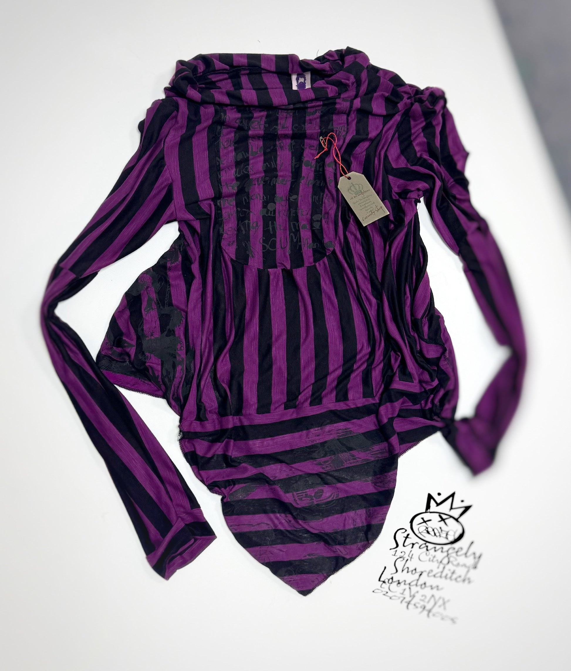 The “Cut Throat Jake” extra long-sleeve tshirt brings an edgy twist to classic streetwear. Crafted in a premium light cotton/lycra micro jersey, this unique piece combines a comfortable fit with eye-catching design details. Featuring circular cut-outs and vibrant printed panels on both the front and back, it stands out with an artfully uneven hem for added dimension. The lightweight fabric ensures breathability and flexibility, perfect for layering or standalone style.