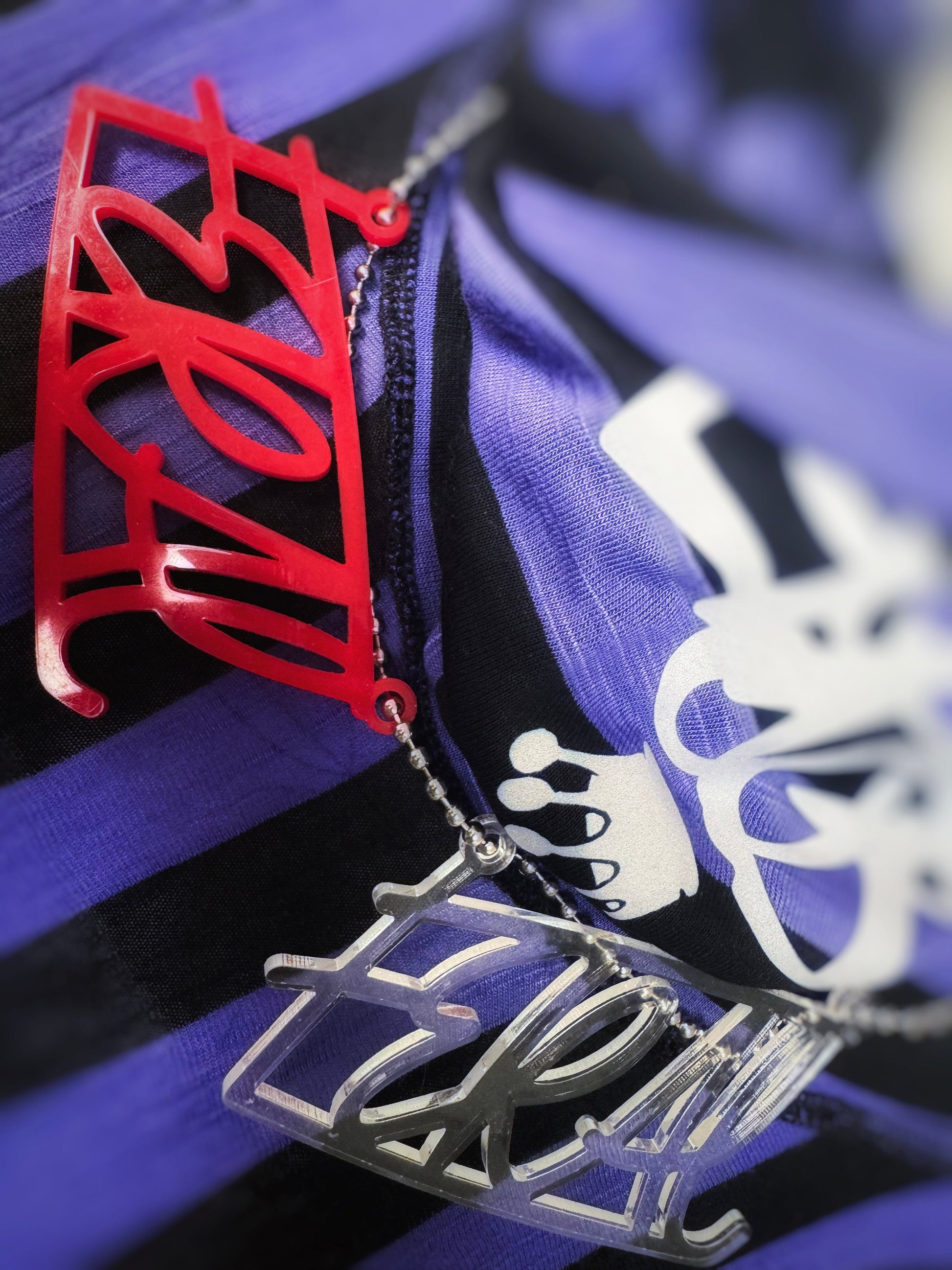 The “FERAL” necklace is a graffiti style laser-cut tag in Perspex & is approx 10x5cm & there are x2 on one necklace. There are more colours coming & a colour drop-selector will be added soon. Currently the necklace comes with one tag in red & one in clear & they are approx 4mm thick. There necklace itself is a stainless steel ball & chain. The necklace comes in a printed display box