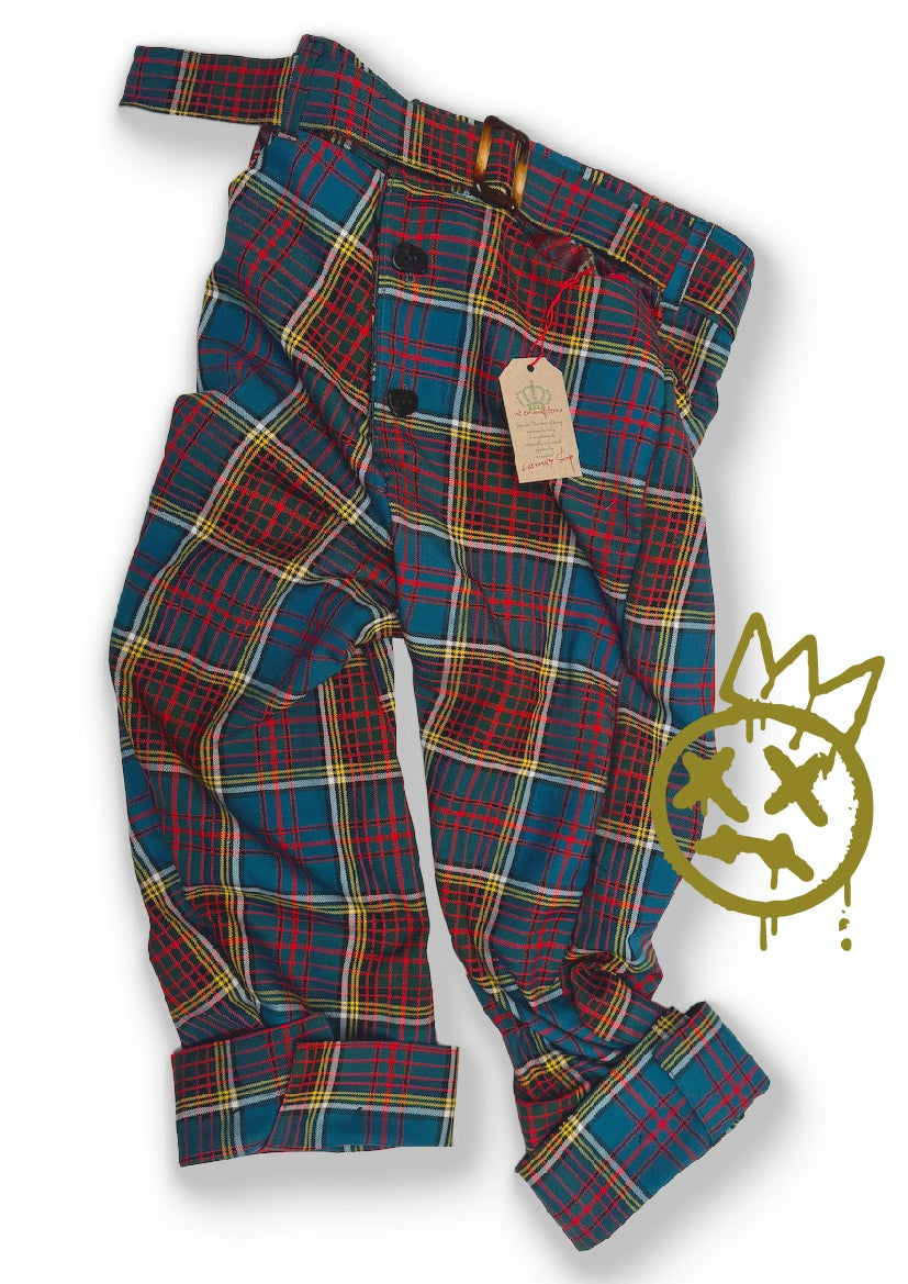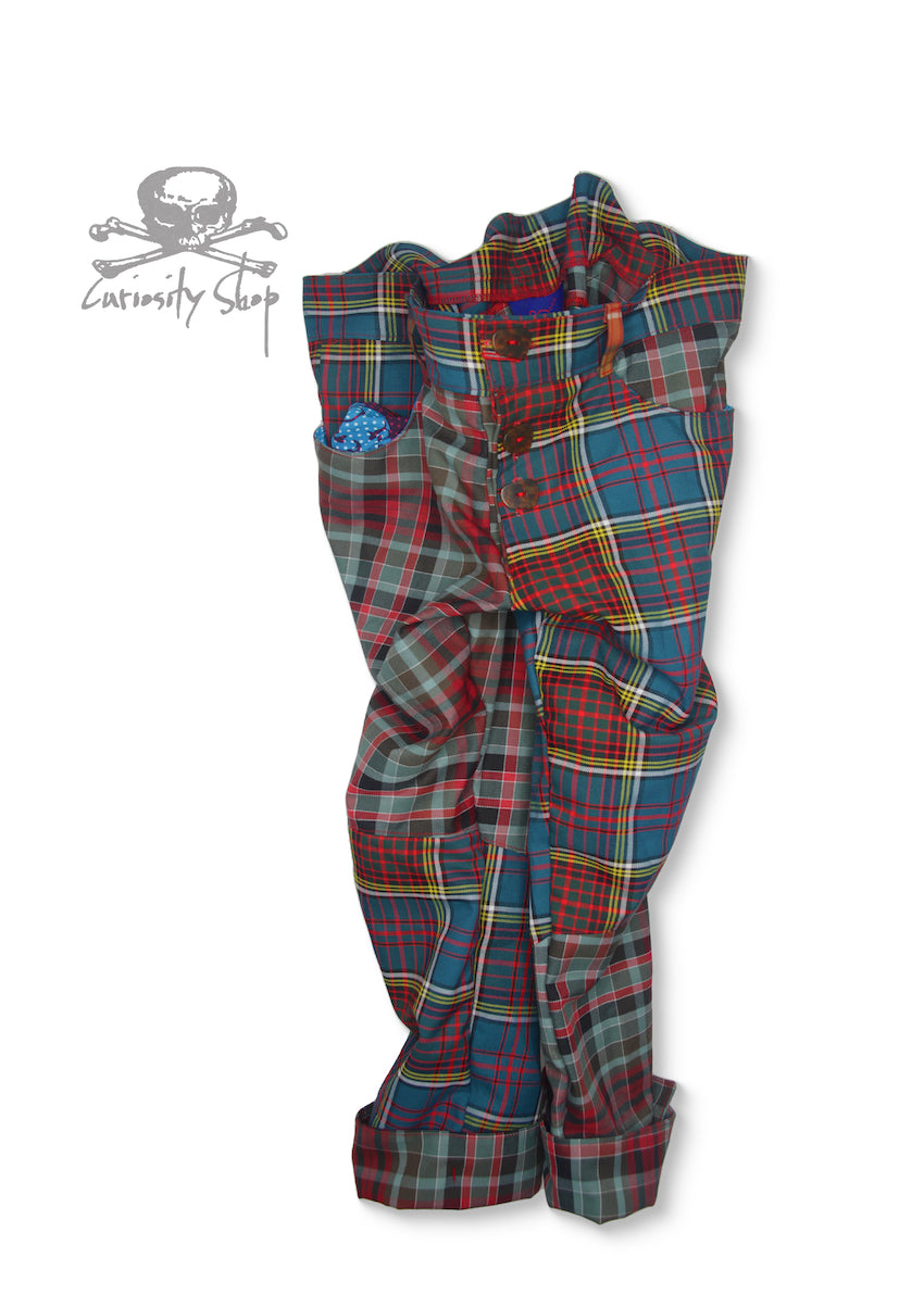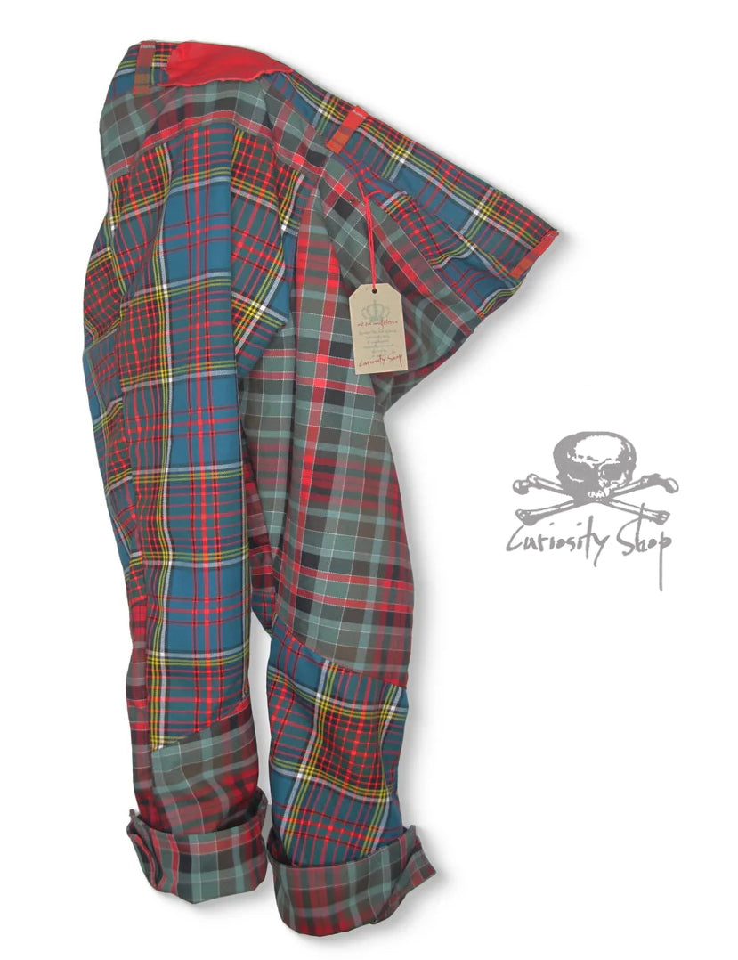 The Gallows Breaches redefine classic trousers with an edgy, unconventional design. Made from a rich blend of polyester, viscose, wool, and cotton, these pants feature over-stitched details and jeans-style front and back pockets, with the rear pocket cut and stitched in an irregular, eye-catching shape. The drop crotch and large belt loops add comfort and style, while the overlapping, over-stitched turn-up cuffs bring a unique layered look.